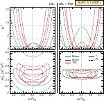 Bounds on θ23 from MINOS (green), NOνA (dark-redwood), T2K (red) and their combination (blue). Left (right) panels are for IO (NO); for each experiment Δχ2 is defined with respect to the global minimum of the two orderings. The upper panels show the 1-dimensional Δχ2 from LBL accelerator experiments after imposing a prior on θ13 to account for reactor bounds. The lower panels show the corresponding determination when the full information of LBL and reactor experiments is used in the combination. In all panels solar and KamLAND data are included to constrain Δm221 and θ12. |
